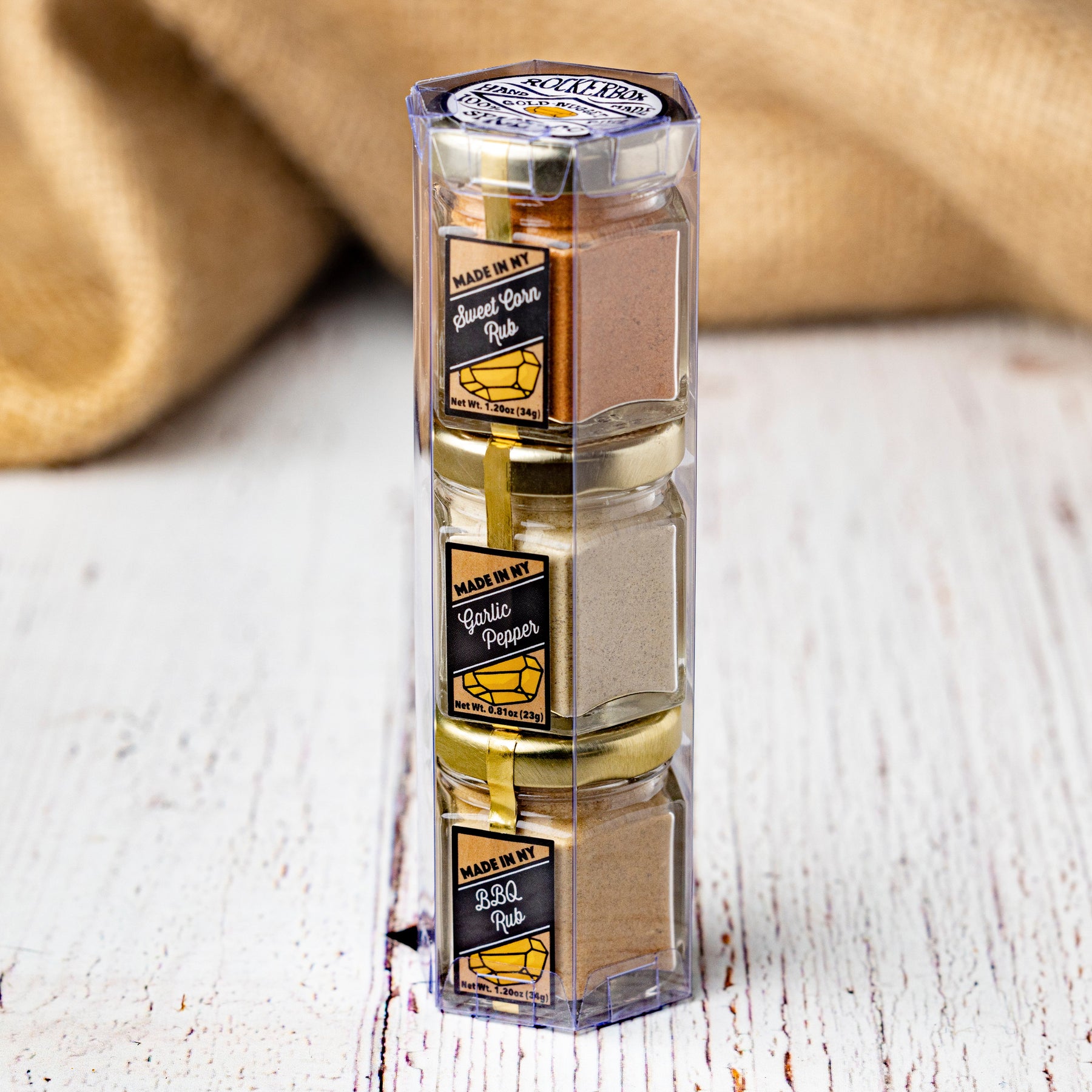 Each gift pack contains three 2-oz jars in a sleek hexagon tower. These little trios make excellent go-to gifts that are fun, useful, and unique.